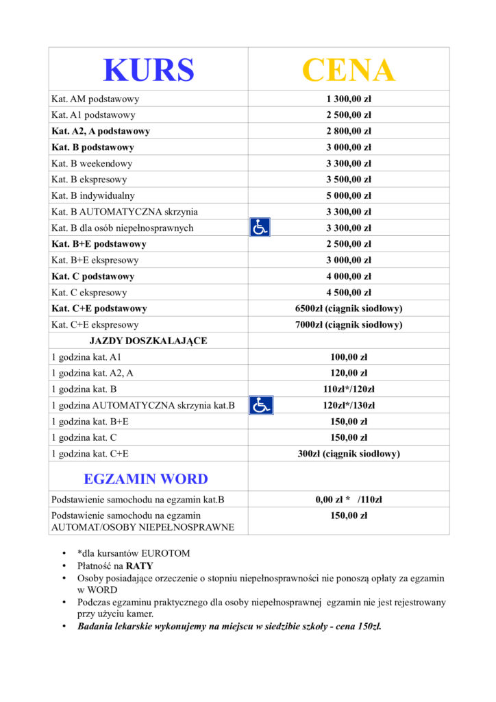 Posiada 20-letnie doświadczenie w pracy instruktora nauki jazdy, utalentowany, cierpliwy, przyjaźnie nastawiony do ludzi, zawsze uśmiechnięty.